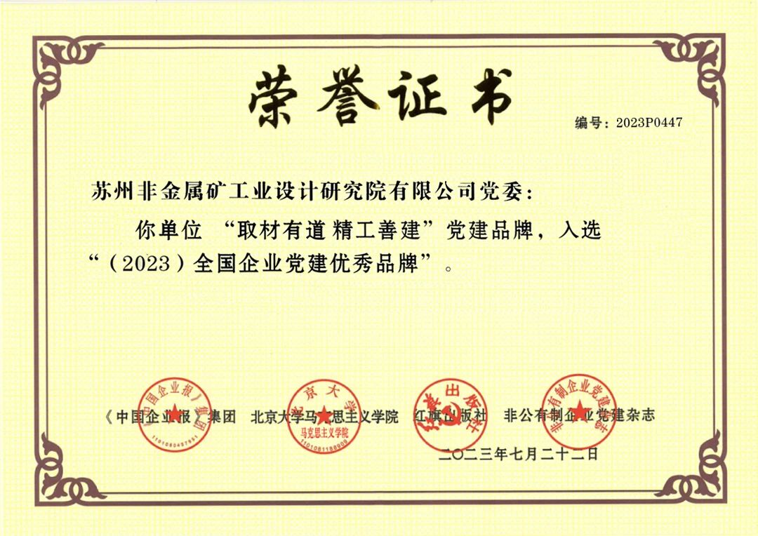 喜訊!蘇州非礦院“取材有道 精工善建”黨建品牌”入選2023年全國(guó)企業(yè)黨建優(yōu)秀品牌